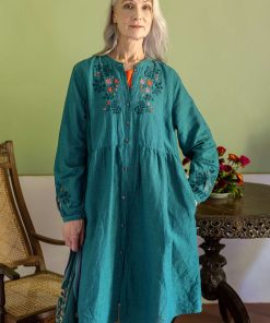 Gudrun Sjödén Women’s Clothes “marianne” Woven Dress In Organic Cotton/linen | Dark Petrol Blue