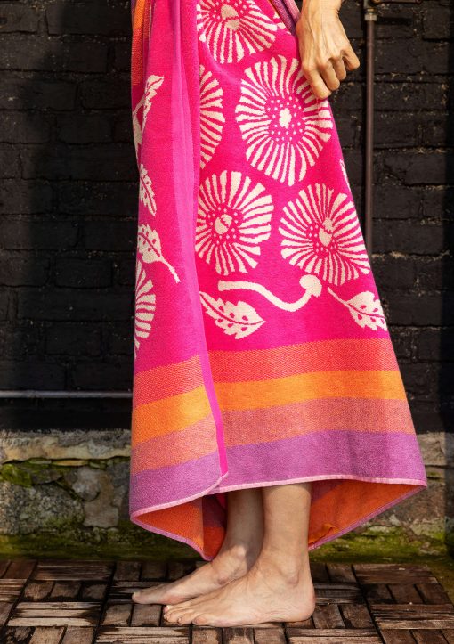 Gudrun Sjödén Homeware Homeware “poppies” Bath Sheet In Organic Cotton | Dark Peony