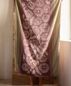 - A generously sized bath sheet, with flowers and striped sides in harmonious colors. Soft and comfy terry with excellent absorbency. Contrasting color at the edge and hangers on the short and long sides.Size and Measurement