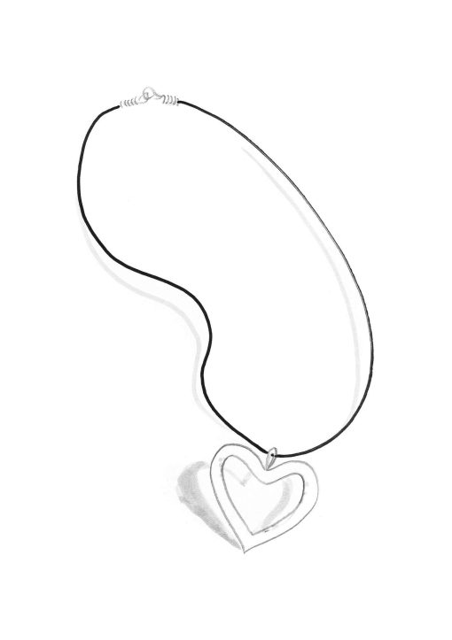 - Exclusive necklace with a charming heart-shaped pendant in 925 sterling silver with relief details. 62 cm long with a silver clasp. Comes in a small cloth bag.Size and Measurement