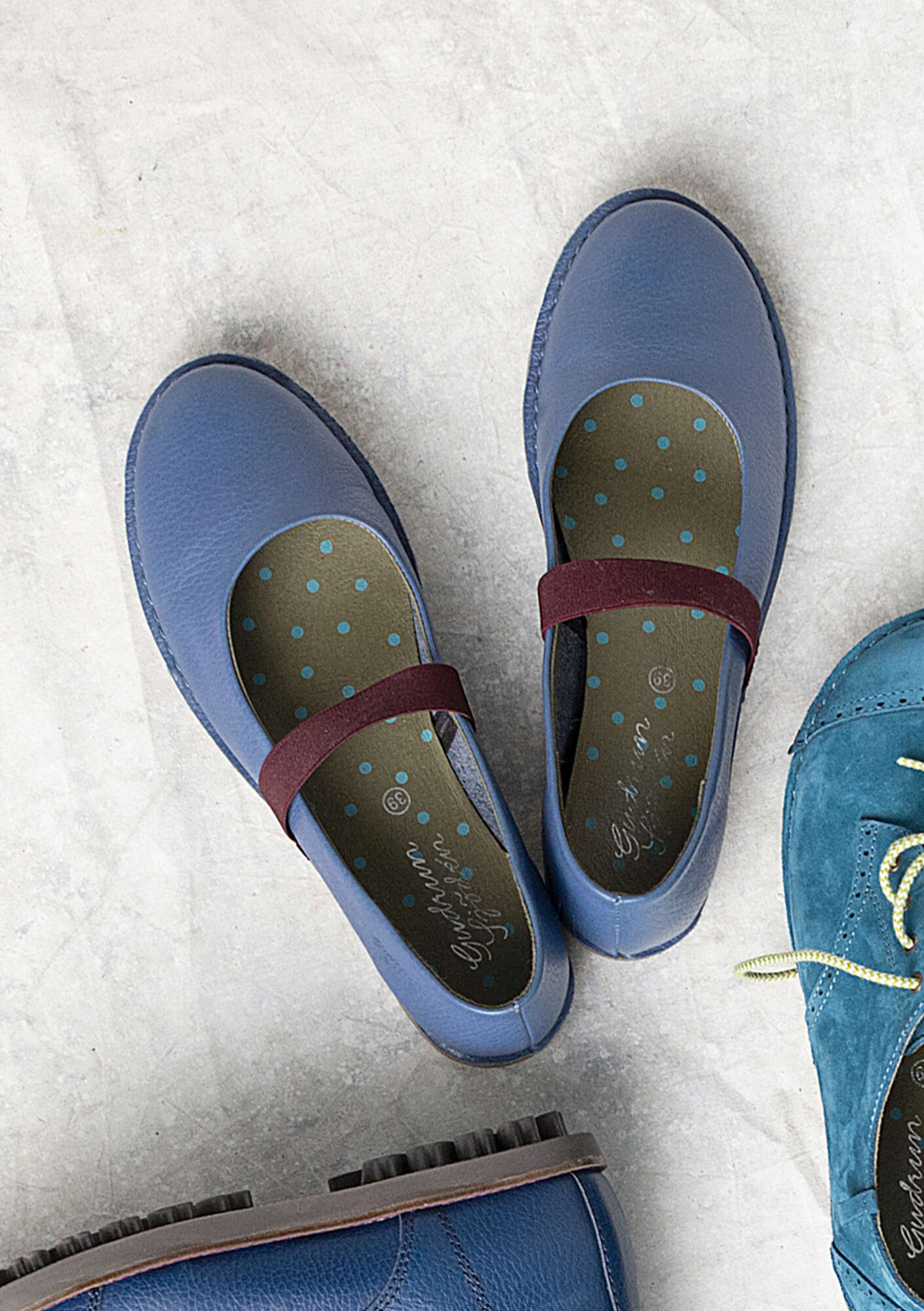 - Lovely little ballerina flats. Comfortable elastic across the foot to keep the shoe in place. Dotted insoles.Material and Production