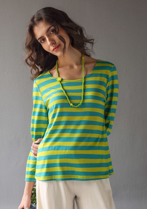 Gudrun Sjödén Women’s Clothes “aina” Jersey Top In Organic Cotton/modal | Lime Green & Oriental Green