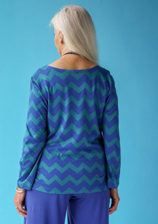 Gudrun Sjödén Women’s Clothes “aina” Jersey Top In Organic Cotton/modal | Sapphire Blue & Turquoise