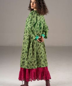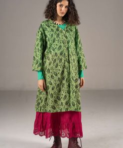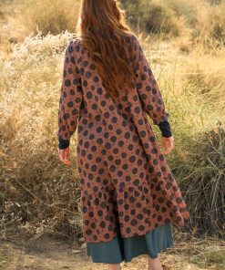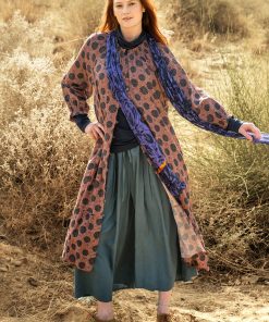 - 100% cotton. The cotton is certified organic. The fabric is digitally printed. The entire production chain is certified. Machine wash warm, delicate cycle. Made in Kundli, India.
