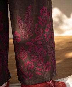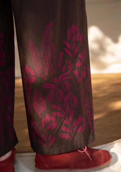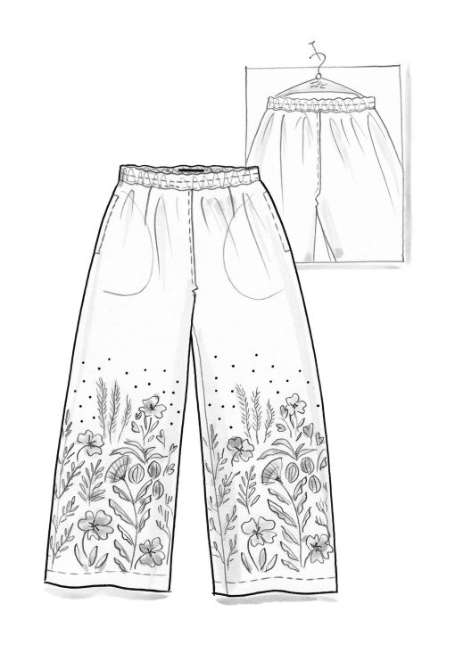 - Digitally printed pants with a placed, flourishing pattern design at the lower section. Elastic waistband and side pockets.Size and Measurement