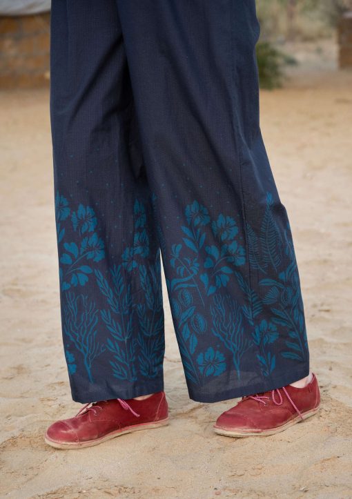 - Digitally printed pants with a placed, flourishing pattern design at the lower section. Elastic waistband and side pockets.Size and Measurement