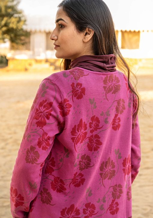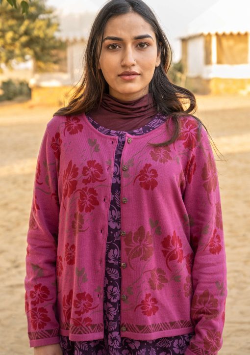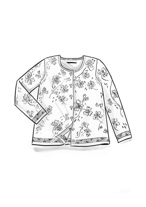 - Printed cardigan with a placed pattern that is screen-printed by hand. Knit borders at the cuffs and hem. Round neckline, long sleeves and carved, natural-colored coconut buttons.Size and Measurement
