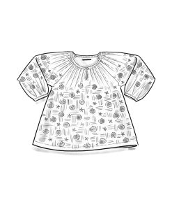 - Printed blouse with decorative pintucks around the neckline. Vent at the front and long sleeves with gathers at the cuffs.Size and Measurement