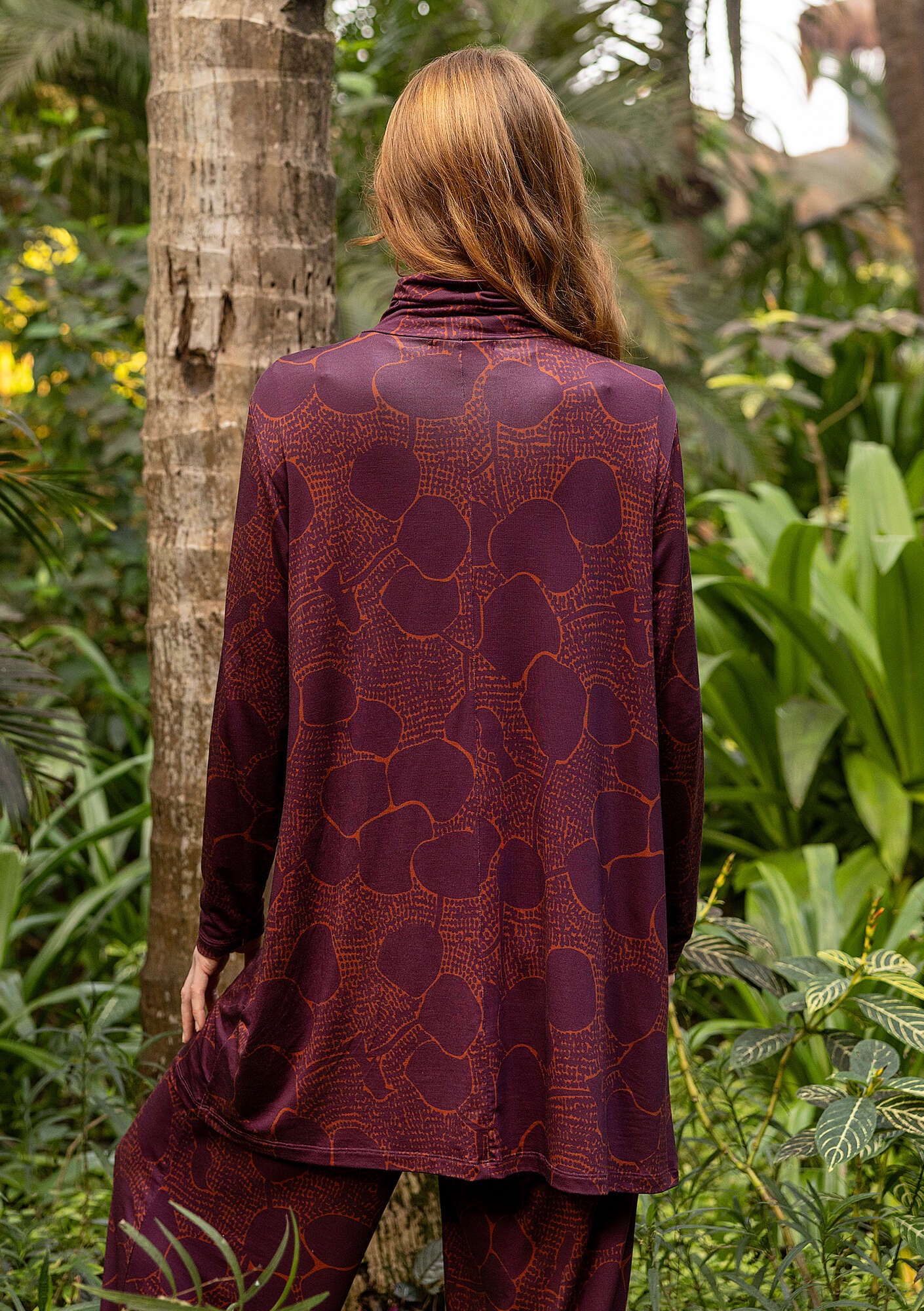 - Printed A-line turtleneck tunic with two different pattern designs that vary between the colorways. Side pockets.Size and Measurement
