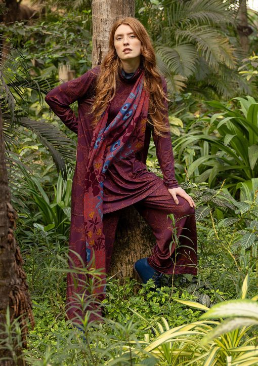 - 94% lyocell/6% spandex. TENCEL™ Lyocell fiber is made from controlled or certified wood sources and is produced in a closed-loop process that recycles 99.8% of the solvent, which results in almost zero waste. The fabric is digitally printed. The print is certified. Machine wash warm, delicate cycle. Stretch gently to length while damp. Do not tumble dry. Shrinkage 2-3%. Made in Barcelos, Portugal.