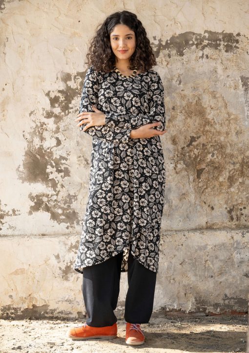 - 94% lyocell/6% spandex. TENCEL™ Lyocell fiber is made from controlled or certified wood sources and is produced in a closed-loop process that recycles 99.8% of the solvent, which results in almost zero waste. The printing process is certified. Machine wash warm, delicate cycle. Stretch gently to length while damp. Stretch gently to length while damp. Shrinkage 4-5%. Do not tumble dry. Made in Thessaloniki, Greece.