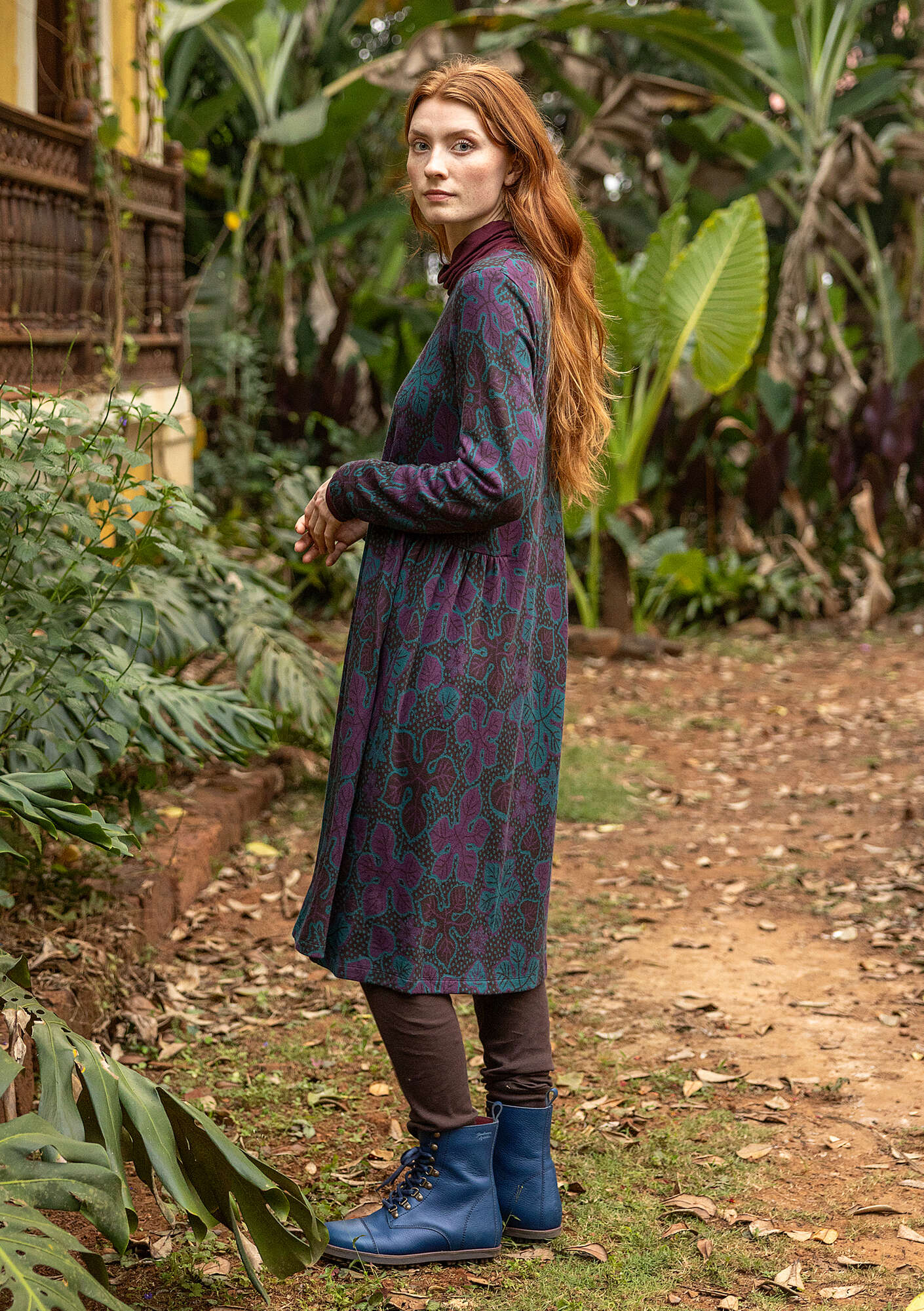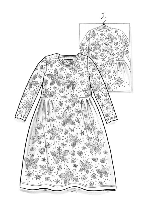- Jacquard-patterned jersey dress with gathers at the sides, creating more generous width toward the hem. Long sleeves and a round neckline.Size and Measurement