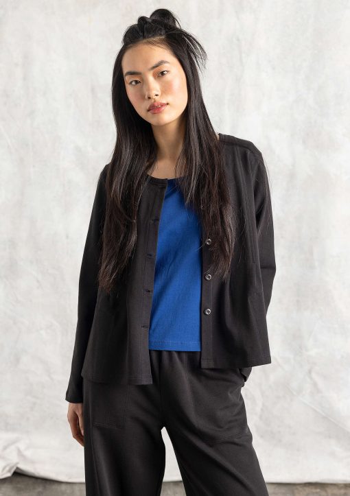 - 100% cotton. The cotton is certified organic. The entire production chain is certified. Machine wash warm, delicate cycle. Stretch gently to length while damp. Do not tumble dry. Shrinkage 3-4%. Made in Noida, India.