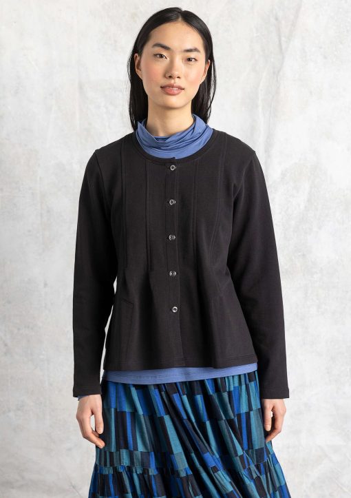- Thicker cotton fabric with a soft, brushed inside. Pretty metal buttons. Side pockets. Style with pleats at the front and back. This gives the garment a pretty silhouette.Size and Measurement
