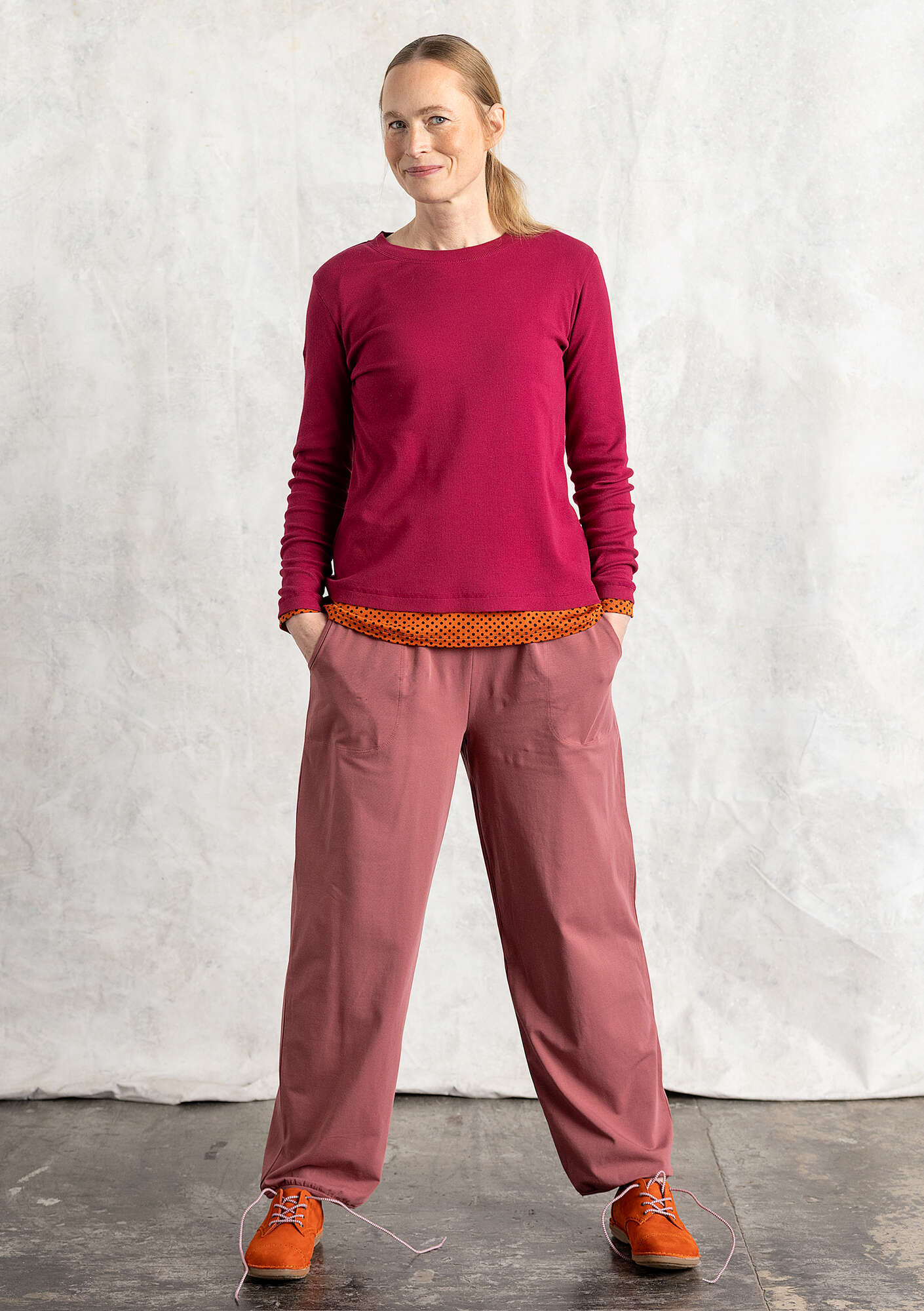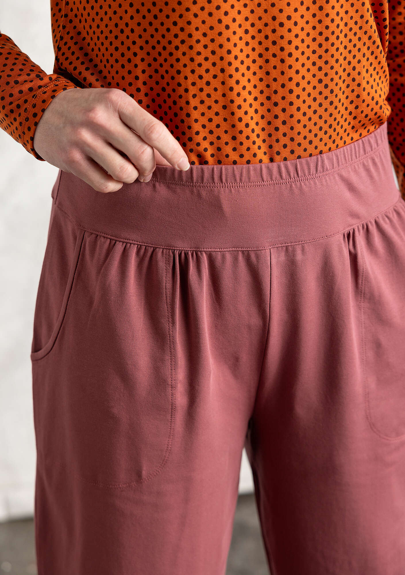 - Our popular, solid-colored puff pants in this season’s colors. Style with a waistband, and a comfy elastic waist. Practical side pockets.Size and Measurement