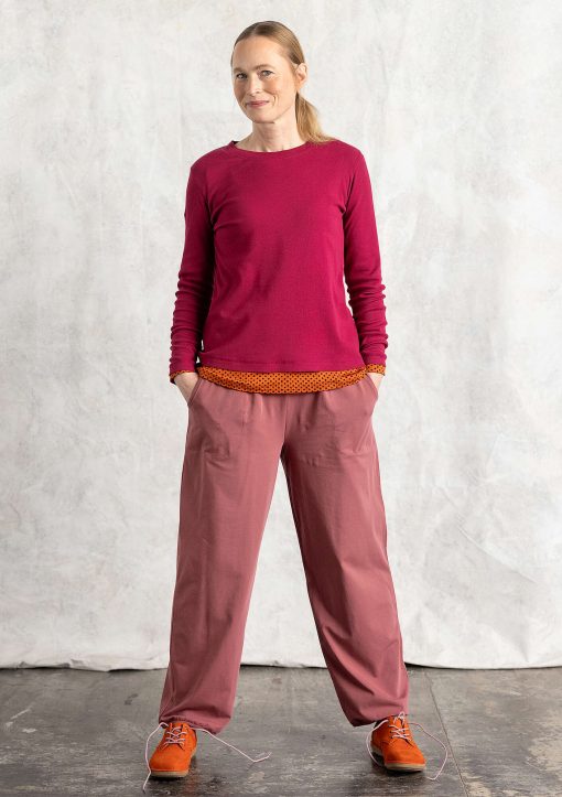 - 94% cotton/6% spandex. The cotton is certified organic. The entire production chain is certified. Machine wash warm, delicate cycle. Stretch gently to length while damp. Do not tumble dry. Shrinkage 3-4%. Made in Sandanski, Bulgaria.