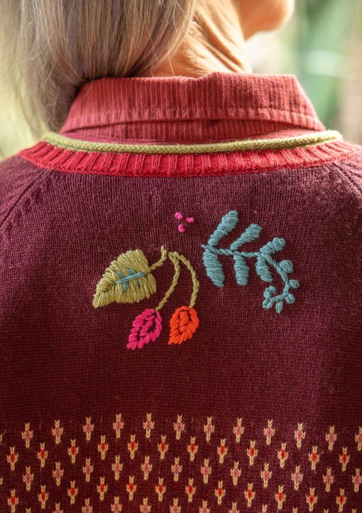 - Jacquard-knit cardigan with long raglan sleeves and a round neck. Hand embroidery on the front and back. Rib-knit edges with an extra rolled edge and buttons in natural-colored coconut wood.Size and Measurement