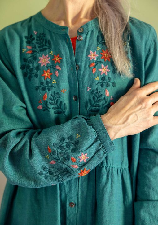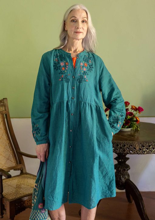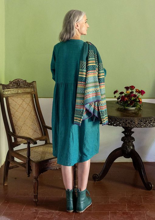 Gudrun Sjödén Women’s Clothes “marianne” Woven Dress In Organic Cotton/linen | Dark Petrol Blue