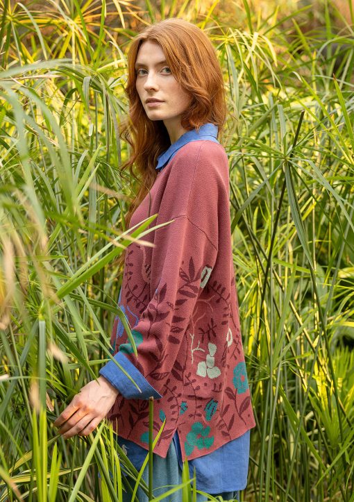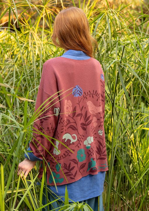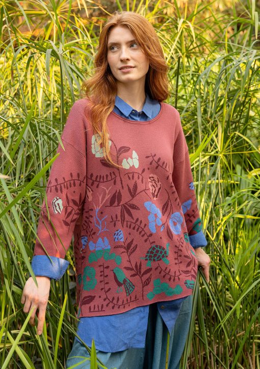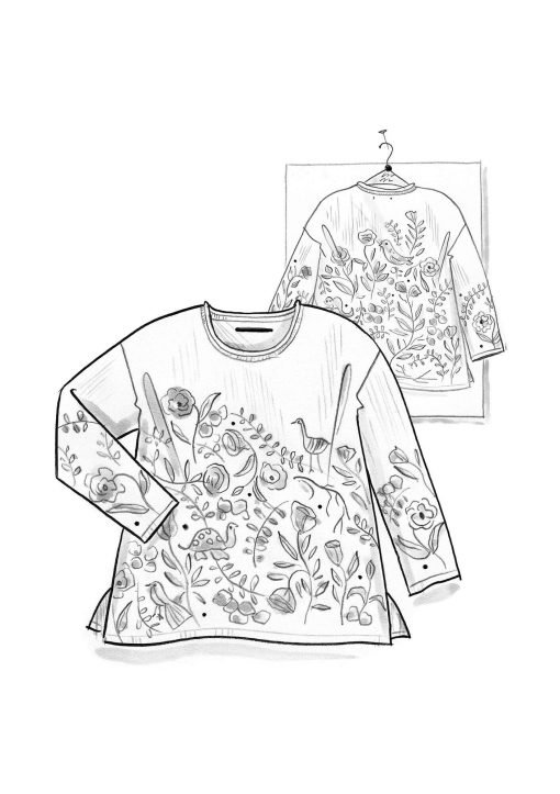 - Jacquard-knit sweater with a placed pattern. Style with side slits, a round neck with a rolled edge and three-quarter sleeves.Size and Measurement