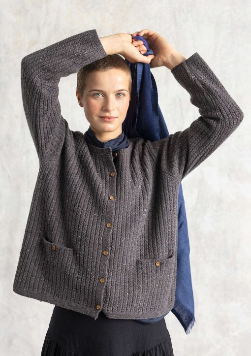 Gudrun Sjödén Women’s Clothes Nubby Cardigan In A Lambswool Blend | Ash Grey & Melange