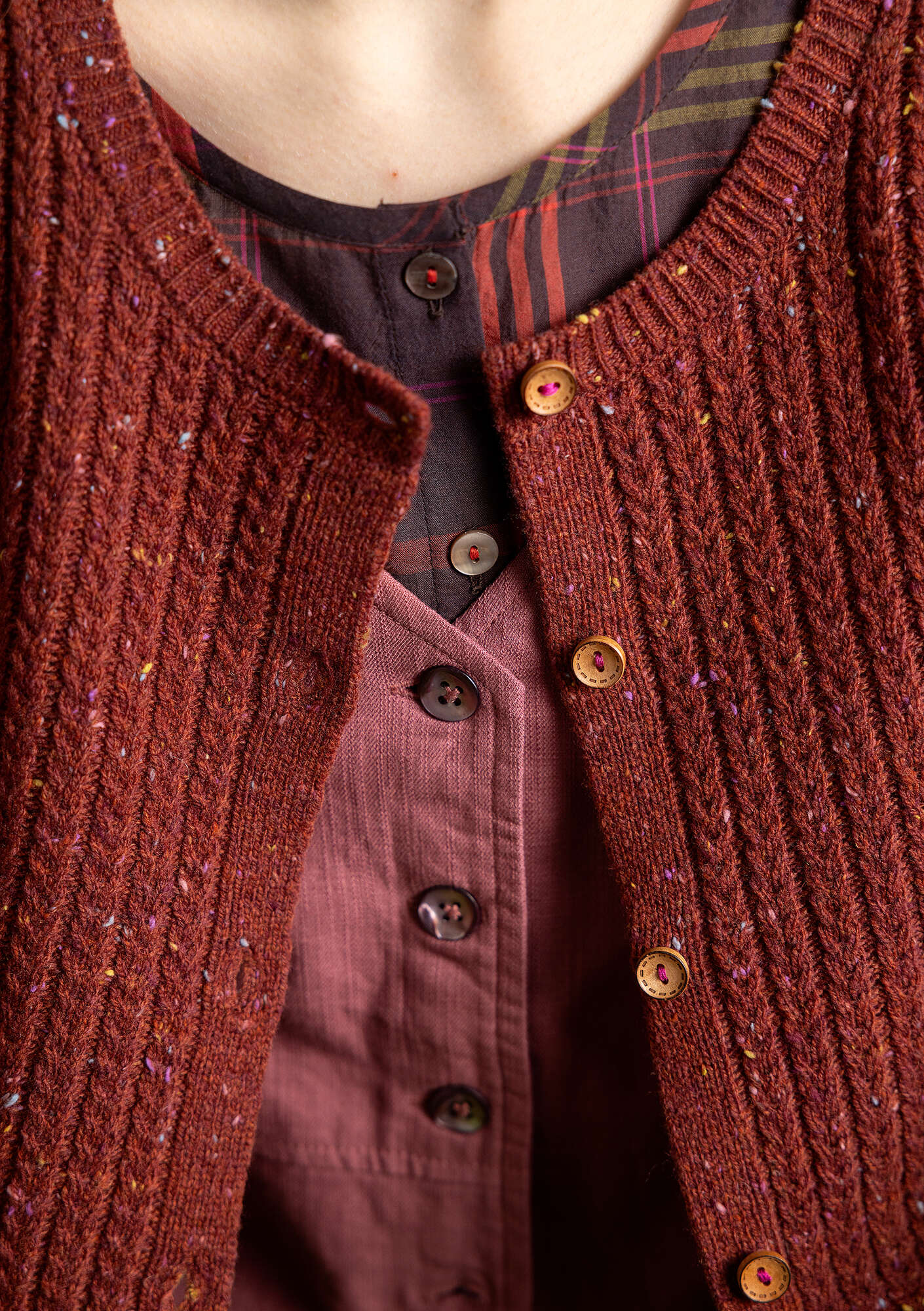 Gudrun Sjödén Women’s Clothes Nubby Cardigan In A Lambswool Blend | Red Curry & Melange