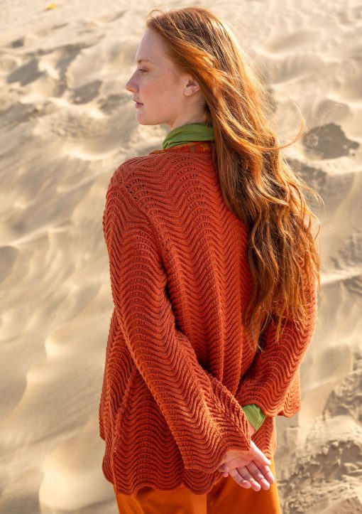 - Textured-knit sweater in a wavy pattern with contrasting edges. Three-quarter sleeves with contrasting cuffs.Size and Measurement