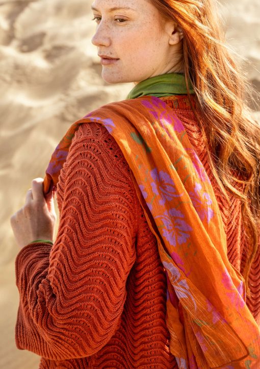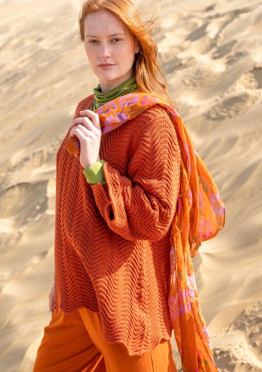- 100% recycled cotton. The recycled cotton is certified and composed of textile production scraps that have been spun into new fibers. The dyeing process is certified. Machine wash warm, delicate cycle. Gently reshape while damp. Dry flat. Store flat. Shrinkage 1-2%. Made in Casablanca, Morocco.