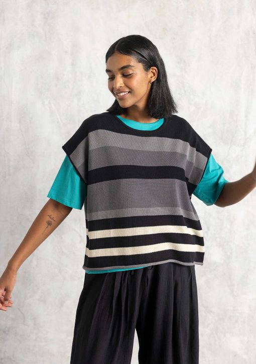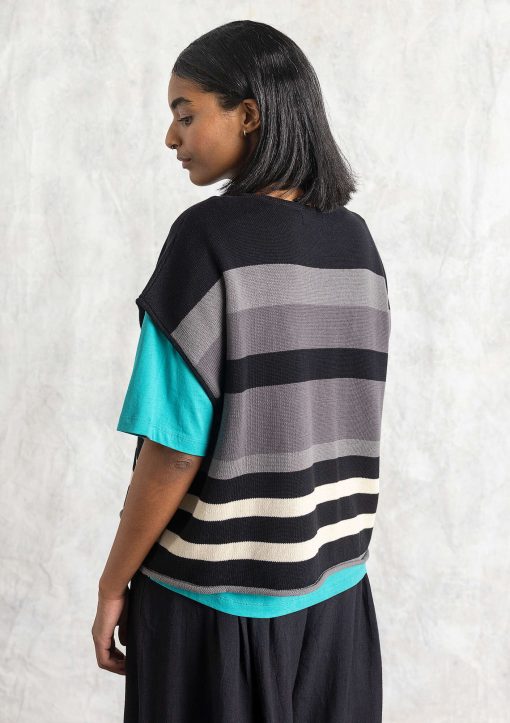 Gudrun Sjödén Women’s Clothes “rut” Knit Vest In Organic/recycled Cotton | Ash Grey & Stripe