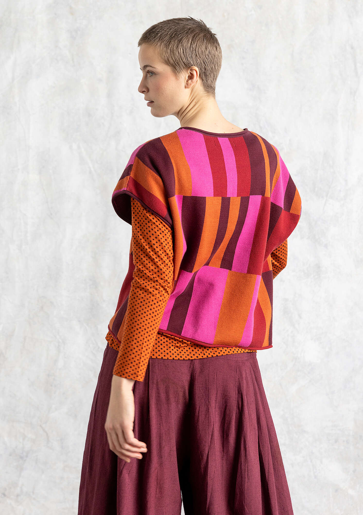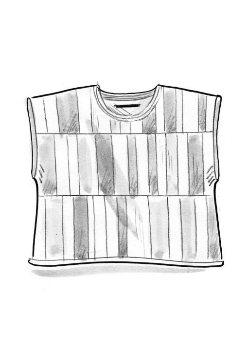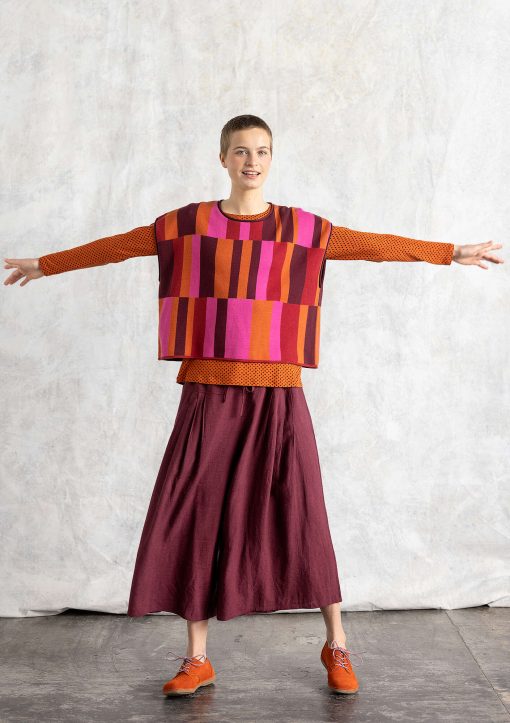 - A slightly wider, straight-cut style that drapes over the shoulders. The vest is decorated with three different patterns in different knitting techniques and thicknesses, which is why the neckline and hem are finished differently. Rolled edges at the armholes.Size and Measurement
