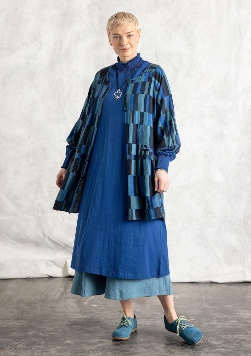 - 80% rayon/20% linen. LENZING™ ECOVERO™ Viscose fiber comes from controlled or certified wood sources and is produced with at least 50% less carbon dioxide emissions and water consumption compared to generic viscose.The linen is dew-retted, an environmentally friendly, natural process in which the sun and dew handle the work. The print and dyeing process are certified. Machine wash cold, delicate cycle. Medium iron. Shrinkage 3-4%. Made in Faridabad, India