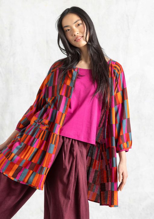 Gudrun Sjödén Women’s Clothes “rut” Woven Artist’s Blouse In Rayon/linen | Parrot Red & Patterned
