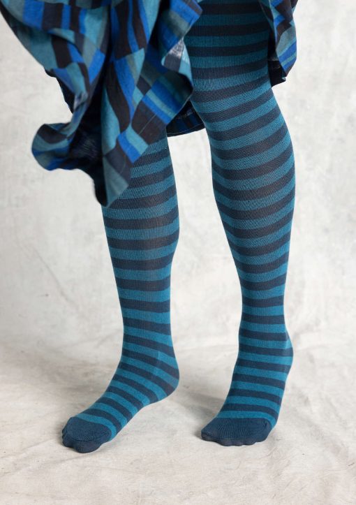 Gudrun Sjödén Women’s Clothes Striped Tights In Organic Cotton | Dark Petrol Blue & Petrol Blue