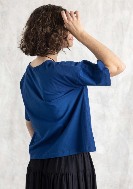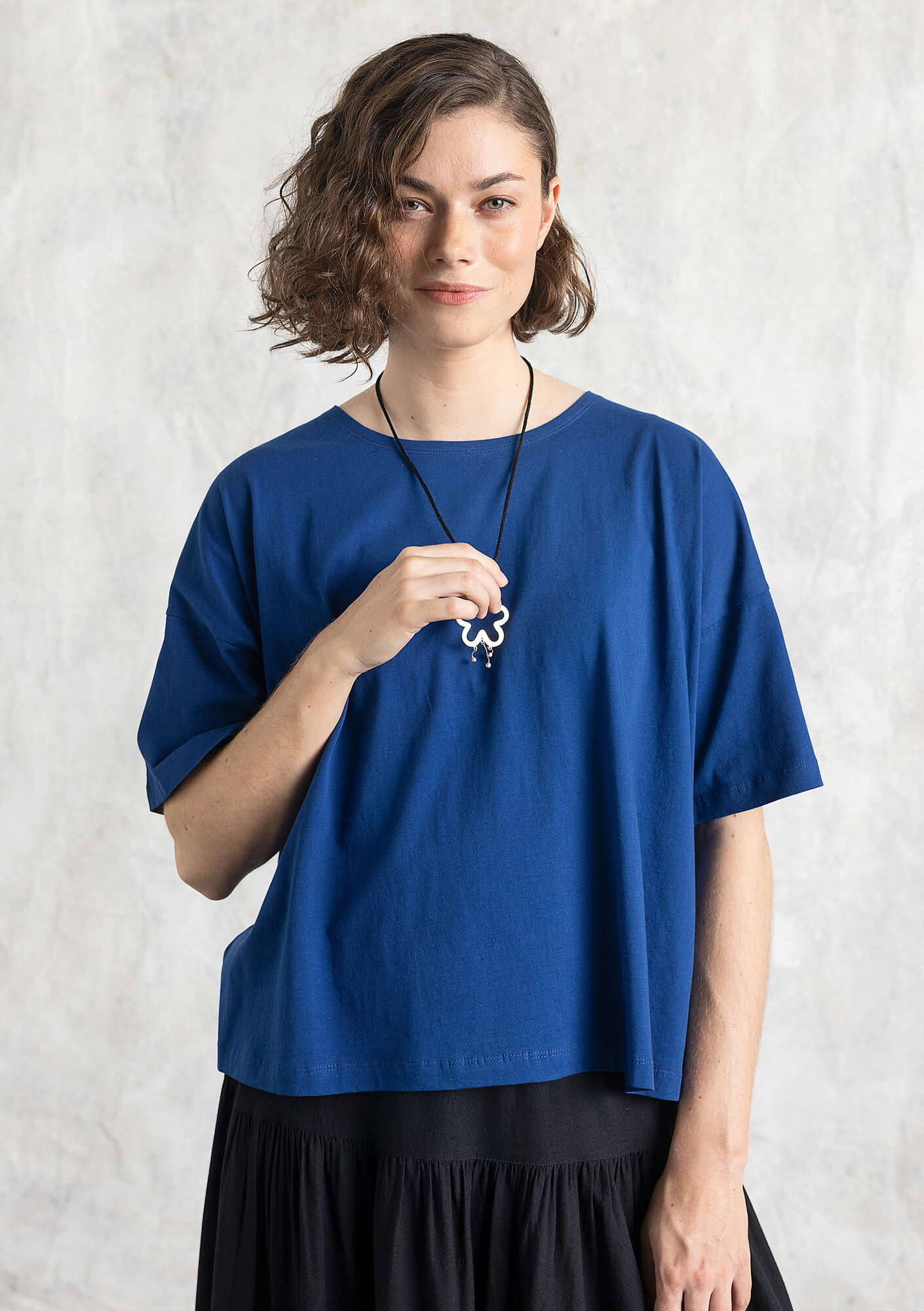 - Solid-colored top in a wide, straight-cut style. Round neckline, dropped shoulders and short sleeves.Size and Measurement