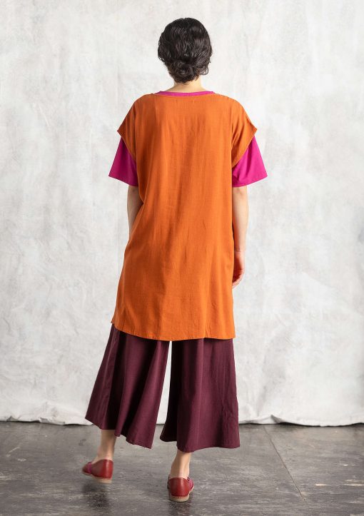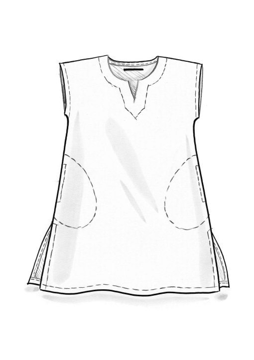 - Sleeveless style with a small vent at the front at the neckline. Pockets and high slits at sides. Fabric with a very beautiful drape. Available in prints and solids.Size and Measurement