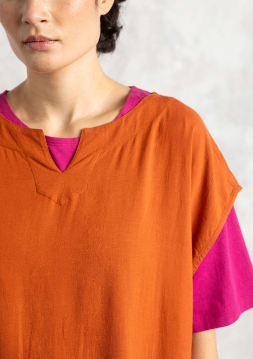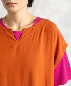 - 80% rayon/20% linen. LENZING™ ECOVERO™ Viscose fiber comes from controlled or certified wood sources and is produced with at least 50% less carbon dioxide emissions and water consumption compared to generic viscose.The linen is dew-retted, an environmentally friendly, natural process in which the sun and dew handle the work. The print and dyeing process are certified. The entire production chain is certified. Machine wash cold, delicate cycle. Medium iron. Shrinkage 3-4%. Made in Faridabad, India.