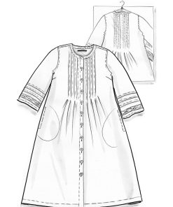 - Solid-colored dress in a beautiful linen blend. Pintucks at the top on the front and back, giving the garment plenty of volume toward the hem. Side pockets and three-quarter sleeves with inset lace. Natural-colored coconut buttons.Size and Measurement