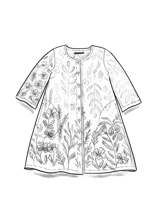 - 100% cotton. The cotton is certified organic. The entire production chain is certified. Coconut shell buttons. Machine wash warm, delicate cycle. Medium iron. Shrinkage 2-3%. Made in Delhi, India.